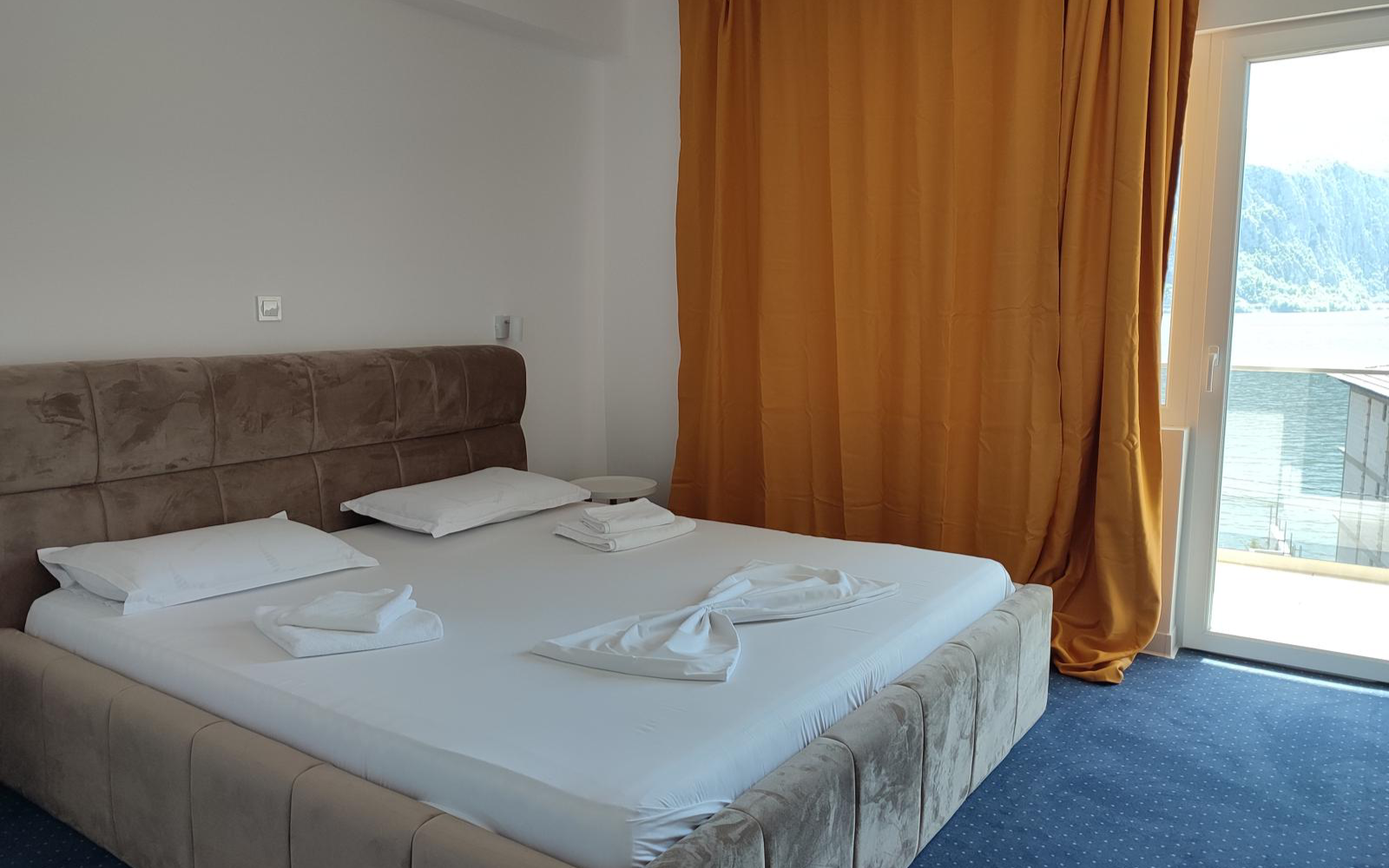 Cameră spațioasă, cu pat king-size, baie privată și vedere superbă la Dunăre – ideală pentru un sejur relaxant în inima naturii.